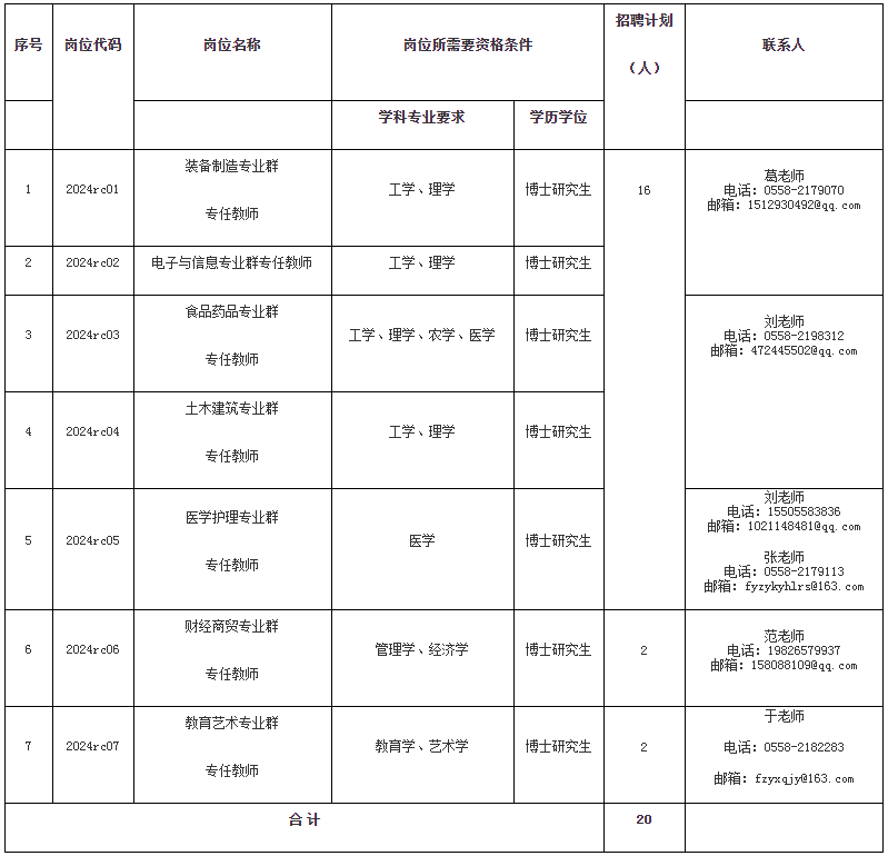 阜陽職業(yè)技術(shù)學(xué)院2024年第一批高層次人才招聘公告(博士研究生)