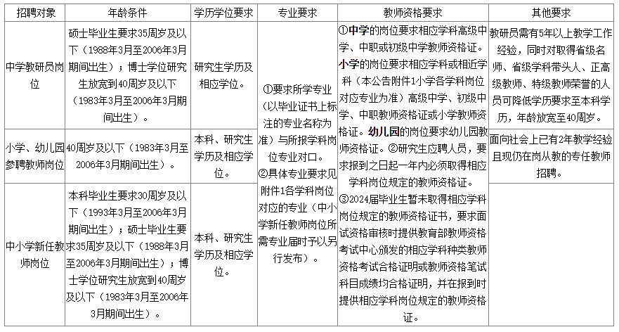 5.專業(yè)條件設(shè)置為“××類”的招聘崗位,符合《福建省機關(guān)事業(yè)單位招聘專業(yè)指導(dǎo)目錄(2024年》中“××類”所列專業(yè)的報考者準予報考;專業(yè)條件設(shè)置為具體專業(yè)名稱的招聘崗位,符合所列專業(yè)(詳見本公告附表各有關(guān)崗位)的報考者準予報考。對博士和留學(xué)人員的專業(yè)要求按相近原則認定。