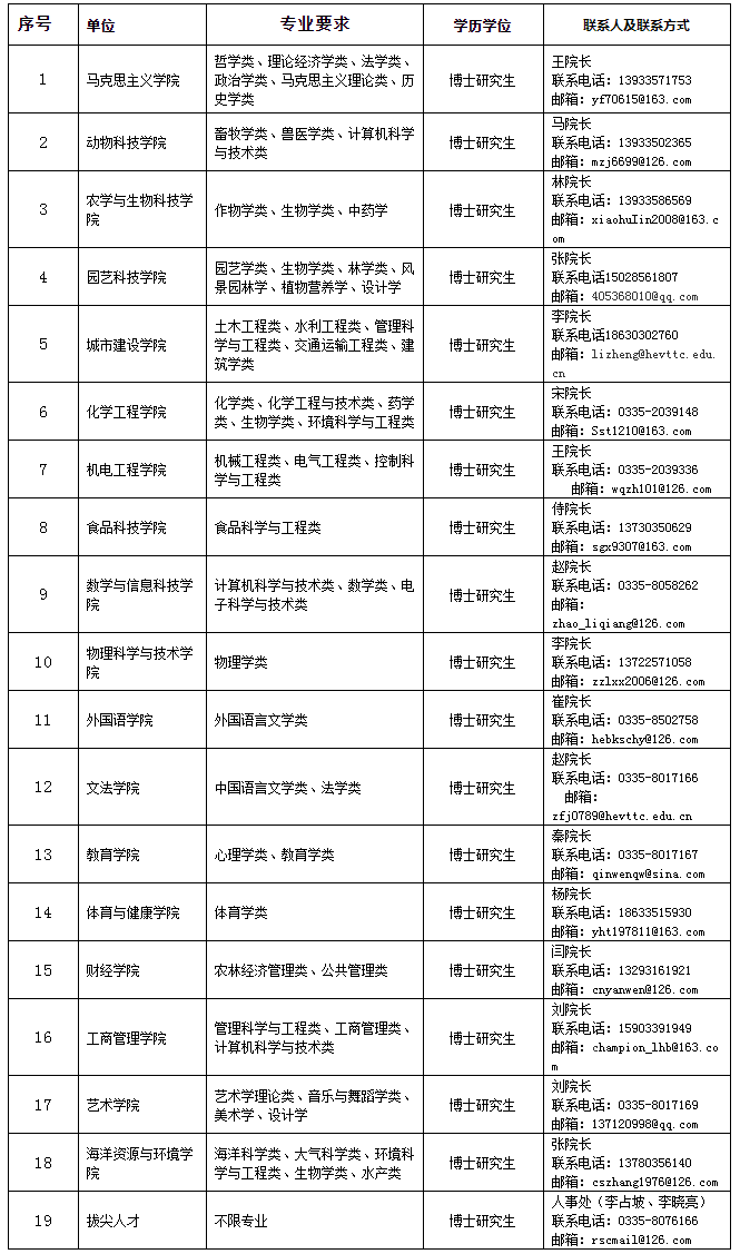 河北科技師范學(xué)院2024年高層次人才招聘專業(yè)范圍及聯(lián)系方式
