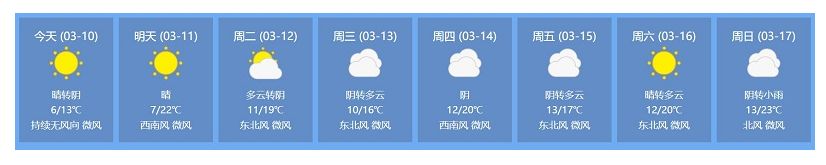 荊門(mén)考區(qū)考試期間晴轉(zhuǎn)多云,未來(lái)本周我市天氣早晚溫差大,請(qǐng)各位考生謹(jǐn)防發(fā)熱感冒。