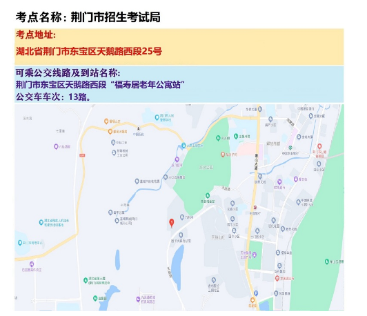 考點(diǎn)地址:荊門(mén)市東寶區(qū)天鵝路西段25號(hào)