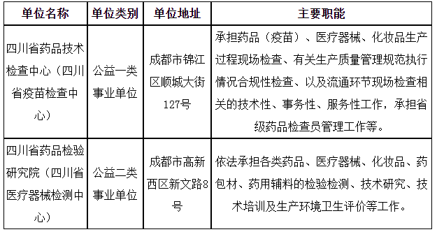 根據(jù)《事業(yè)單位人事管理條例》、《事業(yè)單位公開招聘人員暫行規(guī)定》和《四川省省屬事業(yè)單位公開招聘工作人員實施細則(試行)》等有關規(guī)定,四川省藥品監(jiān)督管理局擬面向社會公開招聘部分工作人員補充到四川省藥品技術檢查中心(四川省疫苗檢查中心)、四川省藥品檢驗研究院(四川省醫(yī)療器械檢測中心)2個下屬事業(yè)單位工作。現(xiàn)將公開招聘有關事項公告如下(本公告由四川省藥品監(jiān)督管理局在四川省人力資源和社會保障廳官網(wǎng)[rst.sc.gov.cn,下同]“人事考試”專欄上發(fā)布)。