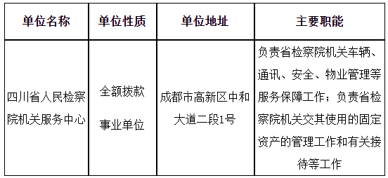 根據(jù)《事業(yè)單位人事管理條例》《事業(yè)單位公開招聘人員暫行規(guī)定》和《四川省省屬事業(yè)單位公開招聘工作人員實施細則(試行)》等有關規(guī)定,四川省人民檢察院擬面向社會公開招聘2名事業(yè)編制工作人員補充到四川省人民檢察院直屬事業(yè)單位機關服務中心工作?,F(xiàn)將公開招聘有關事項公告如下(本公告由四川省人民檢察院在四川省人力資源和社會保障廳官網(wǎng)[rst.sc.gov.cn,下同]“人事考試”專欄上發(fā)布)。