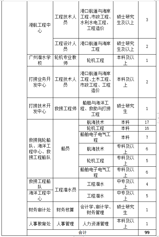 交通運輸部廣州打撈局2024年公開招聘事業(yè)編制工作人員公告