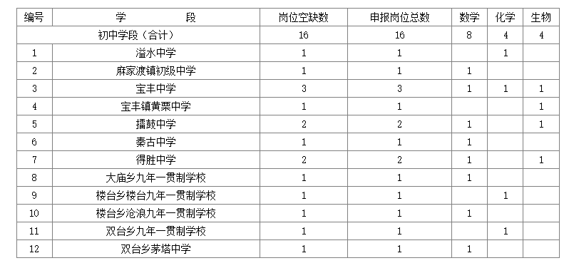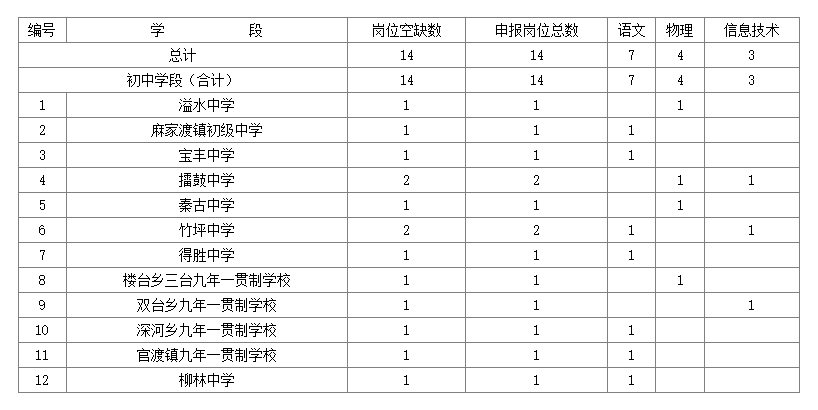 ?。ㄒ唬┬聶C制初中教師崗位(14名)