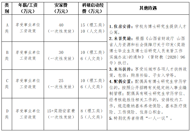 根據(jù)博士研究生學(xué)術(shù)成果、發(fā)展?jié)摿退鶎W(xué)專業(yè),分為A、B、C、D四類,具體待遇如下: