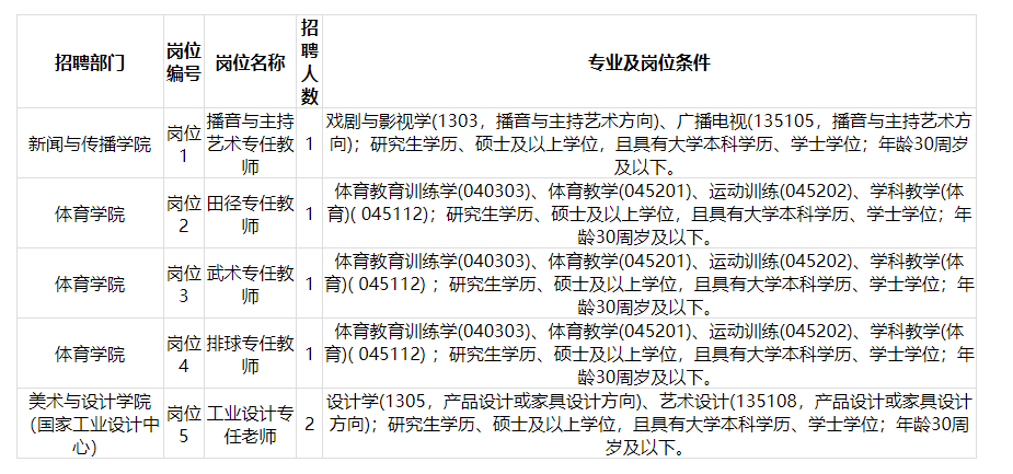 具備良好的政治思想素質,有高度的責任感和較強的事業(yè)心,熱愛高校教育事業(yè),遵守教師職業(yè)道德,符合各招聘崗位條件要求,身心健康,體檢合格。