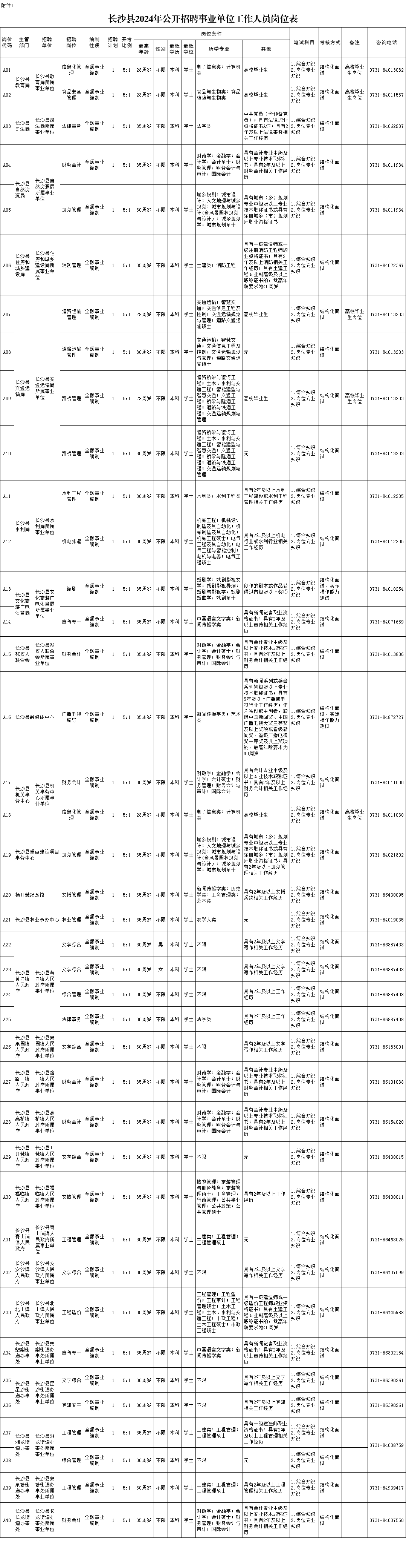 1.長(zhǎng)沙縣2024年公開(kāi)招聘事業(yè)單位工作人員崗位表