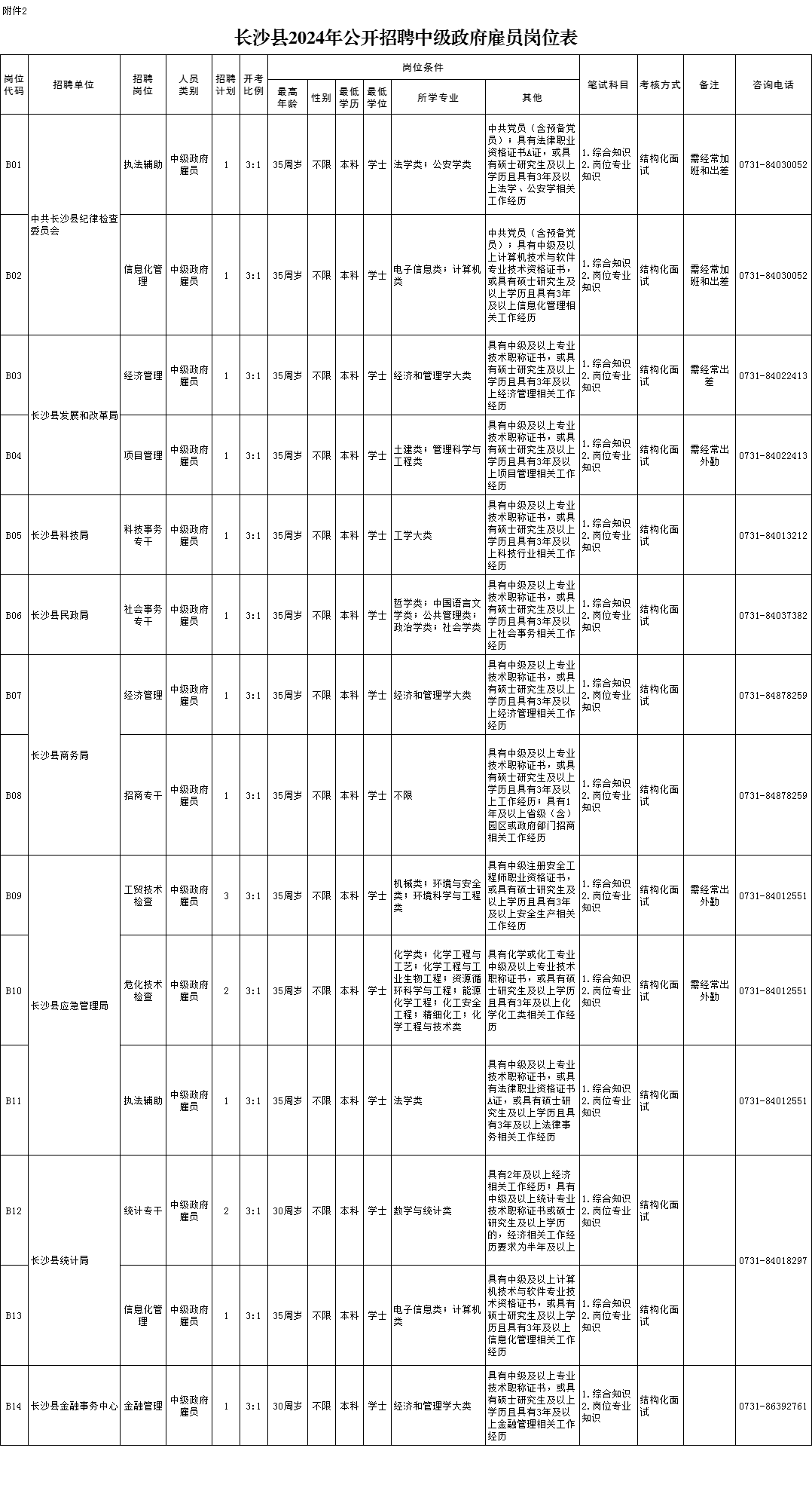 2.長(zhǎng)沙縣2024年公開(kāi)招聘中級(jí)政府雇員崗位表