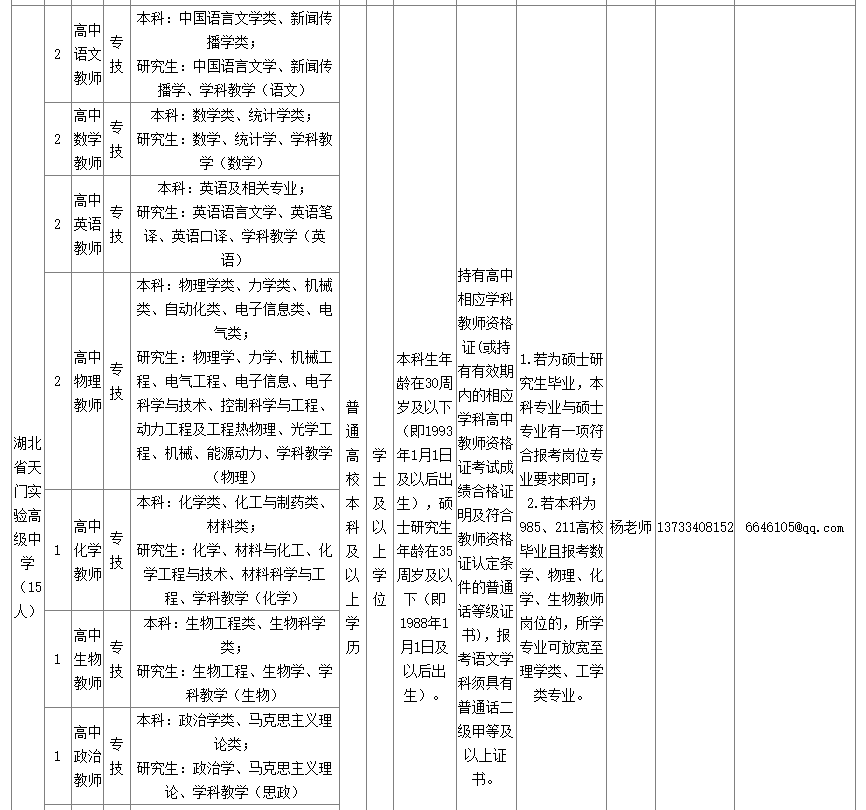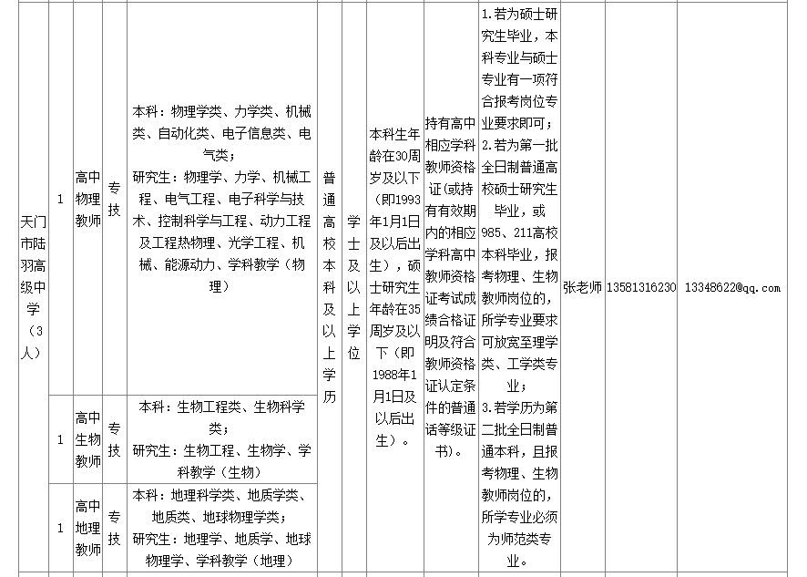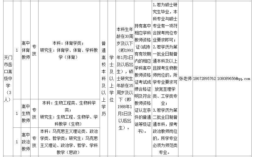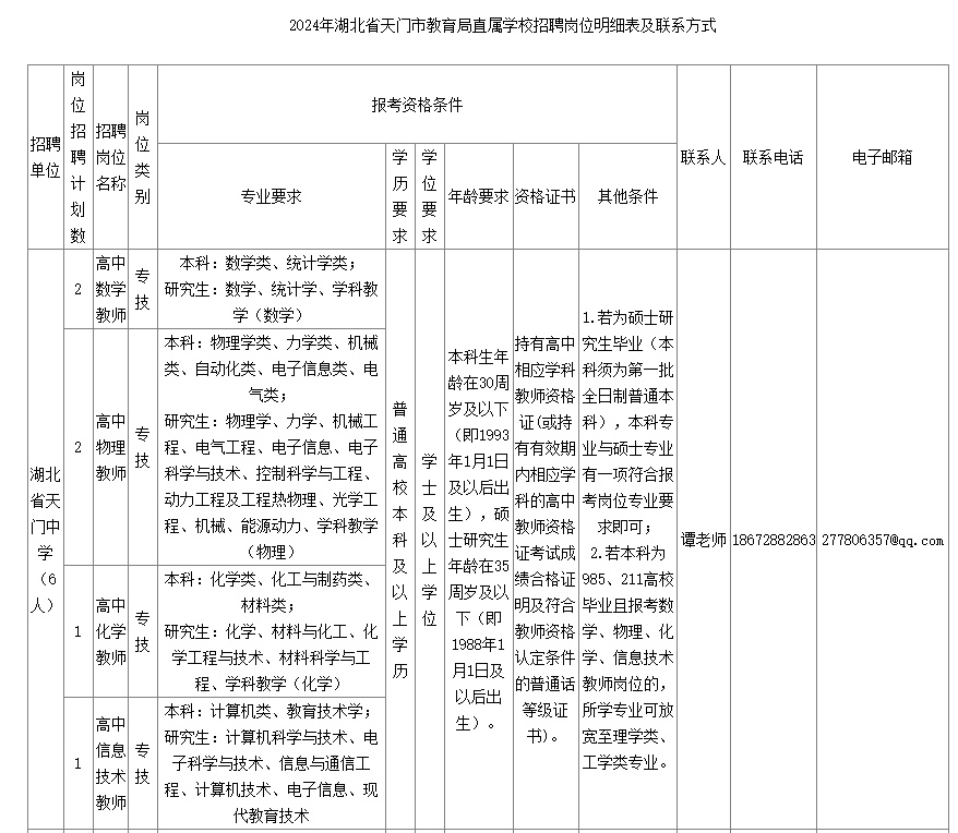1.本次招聘的具體單位、崗位及資格條件詳見《2024年湖北省天門市教育局直屬學(xué)校招聘崗位明細(xì)表及聯(lián)系方式》(附件1);