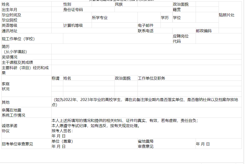 安徽省地震局事業(yè)單位公開招聘人員報名表