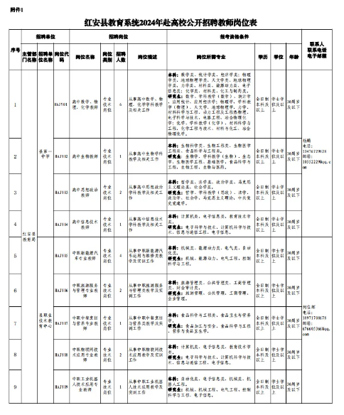 附件:1.紅安縣教育系統(tǒng)2024年赴高校公開(kāi)招聘教師崗位表