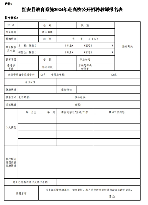 2.紅安縣教育系統(tǒng)2024年赴高校公開(kāi)招聘教師報(bào)名表