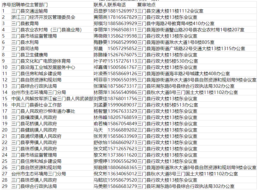 2、2024年三門縣事業(yè)單位公開招聘工作人員考試入圍資格復(fù)審對象名單