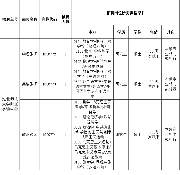 根據(jù)《2024年度淮北師范大學(xué)公開招聘工作人員公告(專職輔導(dǎo)員、專任教師)》,經(jīng)研究,學(xué)校決定近期開展2024年度附中教師(共正式編制3人)招聘工作,現(xiàn)將有關(guān)事項公告如下: