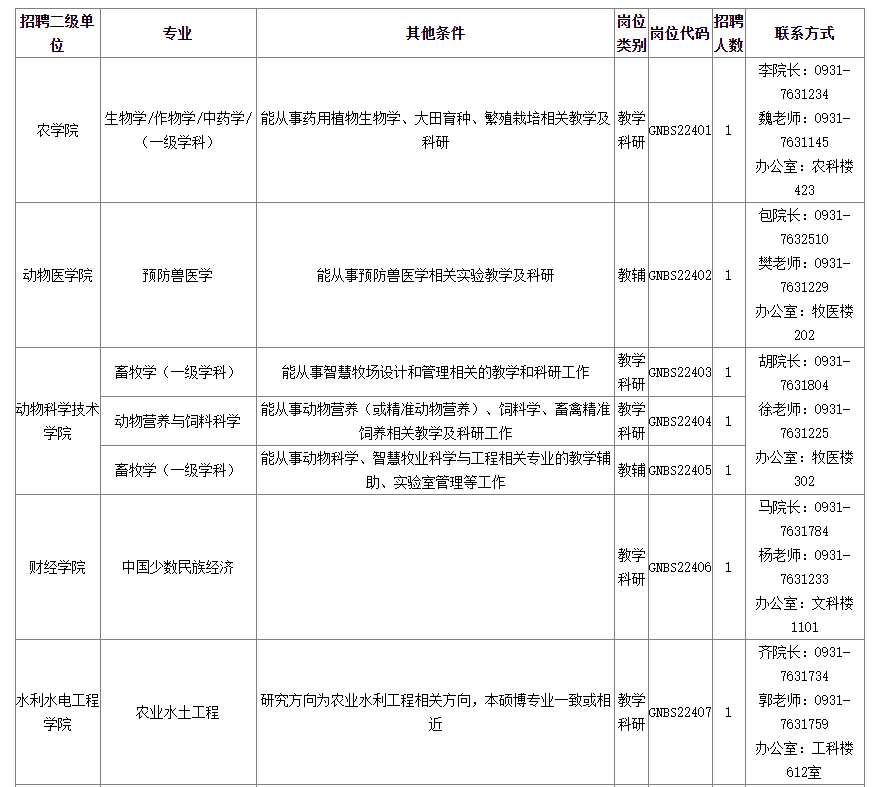 甘肅農(nóng)業(yè)大學(xué)2024年公開招聘教師(博士第二期)公告