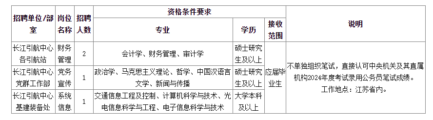 長(zhǎng)江引航中心2024年度招聘工作人員公告
