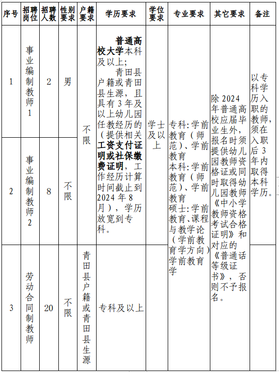 附件:2024年青田縣公開招聘幼兒園教師崗位計劃表