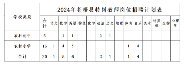根據(jù)自治區(qū)教育廳、編委辦、財政廳、人社廳《關于做好2024年特崗教師招聘工作的通知》(桂教特崗〔2024〕1號)的有關規(guī)定,現(xiàn)將我縣特崗教師招聘有關事項公告如下:
