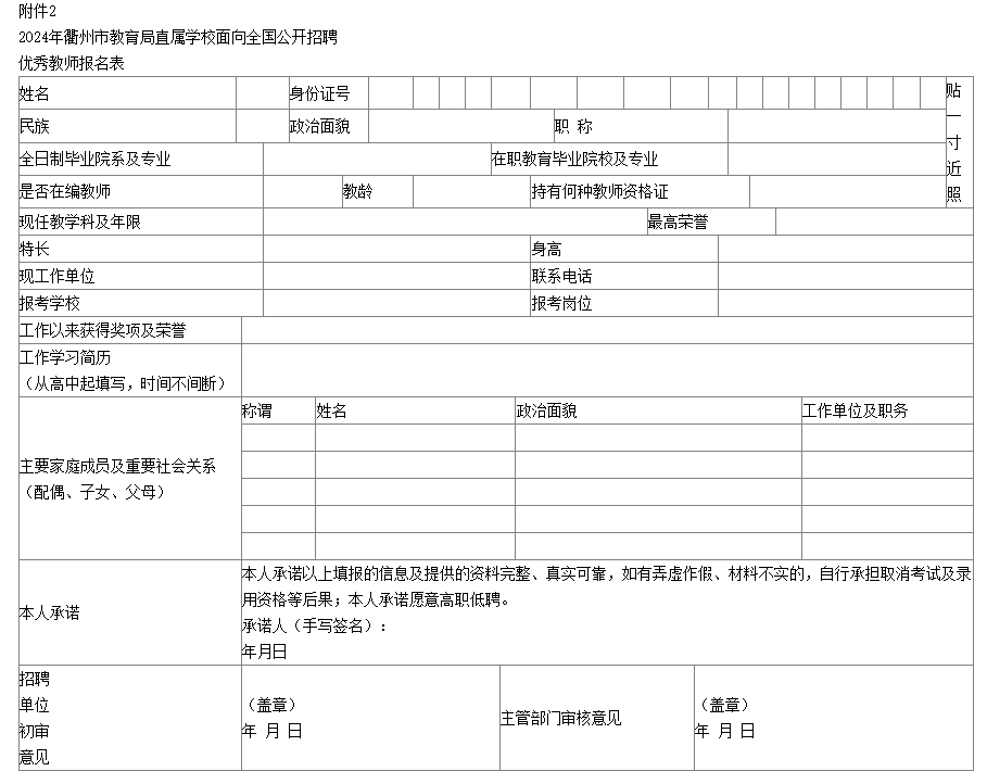 2.2024年衢州市教育局直屬學校面向全國公開招聘優(yōu)秀教師報名表
