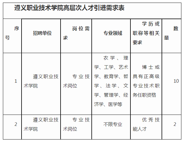 遵義職業(yè)技術(shù)學(xué)院2024年度高層次高水平高技能人才引進(jìn)公告