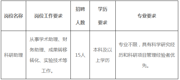 ?。ㄈI(yè)不限,具有科學(xué)研究經(jīng)歷和科研項目管理經(jīng)驗者優(yōu)先。