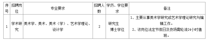 福建省美術(shù)館系福建省文化和旅游廳直屬的公益一類事業(yè)單位。因事業(yè)發(fā)展需要,擬面向社會(huì)招聘高層次人才2名,根據(jù)《福建省省屬事業(yè)單位公開招聘工作人員考試暫行辦法》有關(guān)規(guī)定,發(fā)布以下招聘方案: