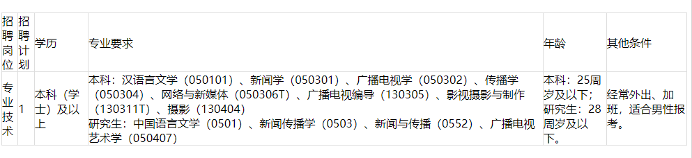 本次公開招聘全媒體記者1名。具體崗位計劃見下表: