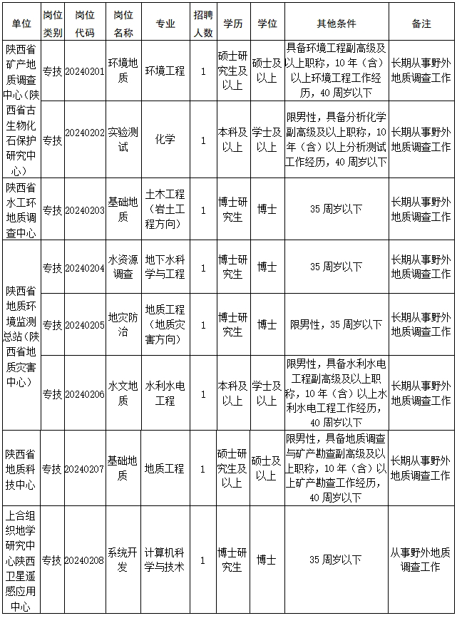 陜西省地質(zhì)調(diào)查院2024年公開(kāi)招聘高層次專業(yè)技術(shù)人才公告