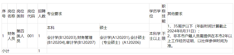 本次招聘第四類(lèi)機(jī)關(guān)事業(yè)單位派遣人員1名,具體崗位情況和要求見(jiàn)崗位表。