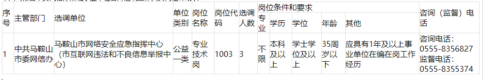中共馬鞍山市委網(wǎng)信辦所屬事業(yè)單位面向全省公開選調(diào)工作人員公告