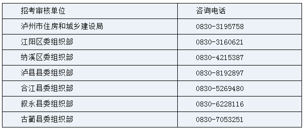 7.請考生認(rèn)真對照職位要求選擇完全符合的職位進(jìn)行報(bào)名。對涉及到《瀘州市2022年上半年公開考試錄用公務(wù)員及參照管理工作人員職位情況表》中專業(yè)等招考條件方面的問題,按下列招考單位電話進(jìn)行咨詢。