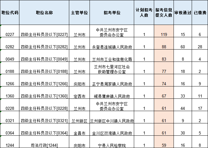 以下為報(bào)名人數(shù)最多的前十崗位: