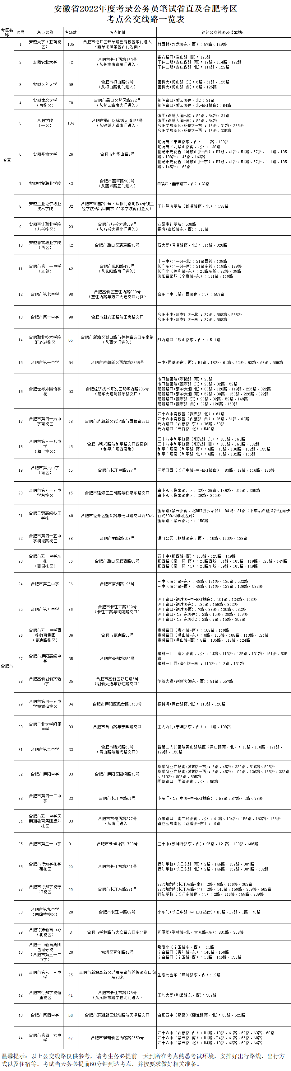 2022年安徽公務(wù)員考試省直及合肥考區(qū)考點(diǎn)公交線路一覽表